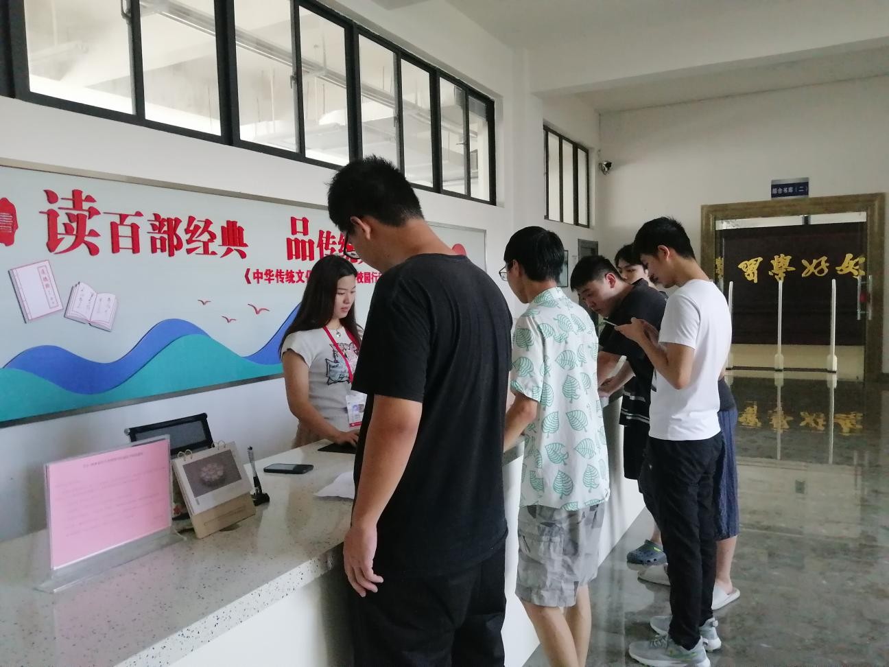 图书馆增派工作人员加班加点为学生 办理离校手续