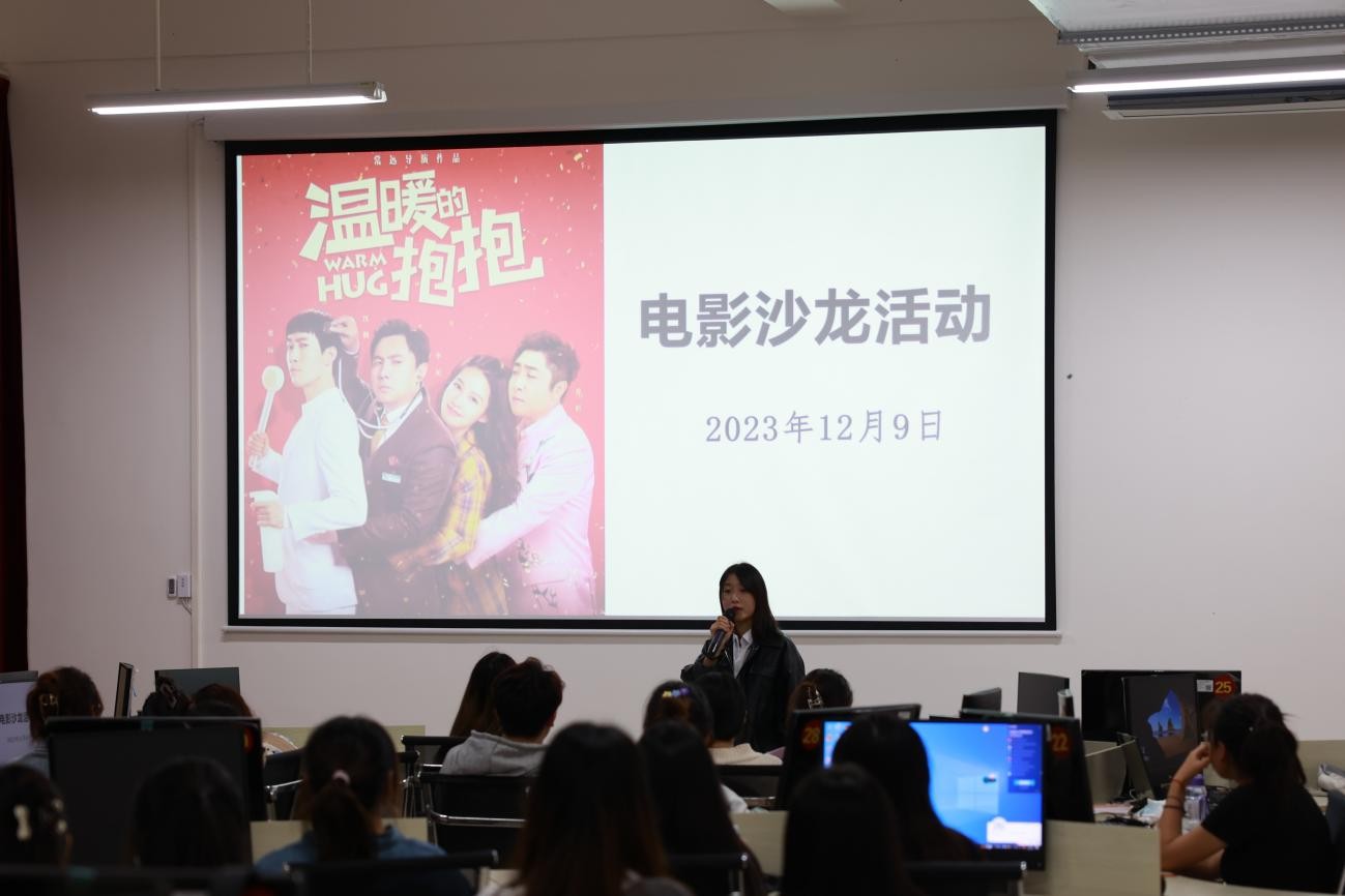 2023年12月9日下午6点,图书馆主办、图书馆读者协会承办的以“传递爱与关怀”为主题的电影沙龙活动在西校区图书馆电子阅览室顺利进行。影片名称为《温暖的抱抱》,本次活动旨在通过温馨的喜剧影片内容,用文艺的力量潜移默化的温暖人、鼓舞人、启迪人,为北艺学子带来欢乐、温暖与思考,助力校园文化多样性发展。