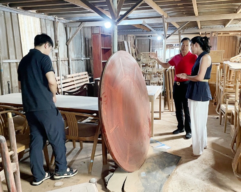 (孙晓莹一行参观红木家具生产车间)