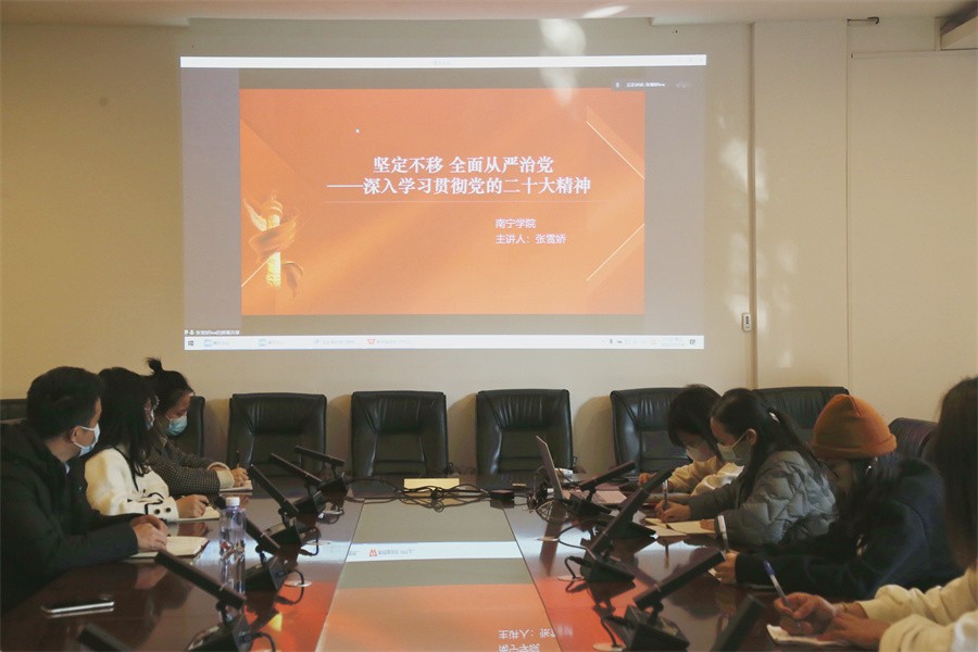 为深入学习宣传贯彻党的二十大精神,更好地团结引领广大青年听党话、跟党走,切实把广大师生的思想和行动统一到会议精神上来,根据自治区党委教育工委组织开展全区高校学习宣传党的二十大精神师生巡讲活动安排,12月14日下午,巡讲团成员南宁学院马克思主义学院副院长张雪娇为我校作党的二十大精神专题宣讲线上报告会。我校团委书记唐良春、宣传部教师、共青团干部及学生团员代表100余人分别于会议现场集中收听收看和线上自行收听收看方式参加报告会。报告会由学校党委宣传部部长文春明主持。