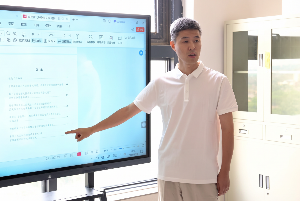 紧接着,党支部书记领学了《中华人民共和国教育部令第41号 普通高等学校学生管理规定》。他结合学院实际,从学生的权利与义务、学籍管理、校园秩序与课外活动、奖励与处分等方面进行了系统解读,重点强调了在学生管理过程中要坚持依法治校、育人为本、公平公正的原则。他指出,作为高校教师,要准确把握规定精神,在日常教学和管理工作中做到依法依规、严管厚爱,切实维护学生合法权益,促进学生健康成长。 会议强调,全体教师要进一步提高政治站位,增强法治意识,将《普通高等学校学生管理规定》的要求落实到教育教学各环节,做到知行合一、以规育人。同时,要结合学院学生特点和专业特色,不断优化管理方式,提升服务学生的能力和水平,营造风清气正、和谐有序的育人环境。