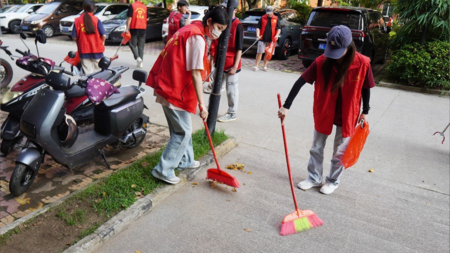在志愿服务活动中,共青团员们各司其职,分工协作,不仅清扫了小区道路,清除楼道“牛皮癣”,清理积存垃圾,归置杂物,还将小区停放的自行车与电动车摆放整齐,令小区整体环境卫生变得更加干净整洁、焕然一新。