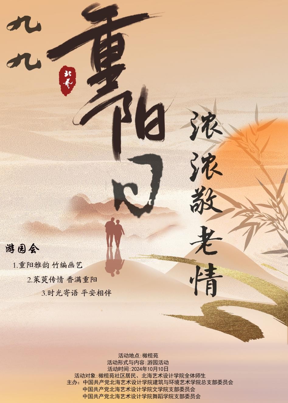 在金秋送爽的重阳节,建筑与环境艺术学院党总支与文学院党支部、舞蹈学院党支部及学院分团委携手,共同举办了一场充满温情的“九九重阳日,浓浓敬老情”志愿服务活动。此次活动不仅是对中华民族尊老、敬老、爱老美德的传承,更是在社区中播撒关爱老年人的种子,让这份深情厚意温暖每一个角落。