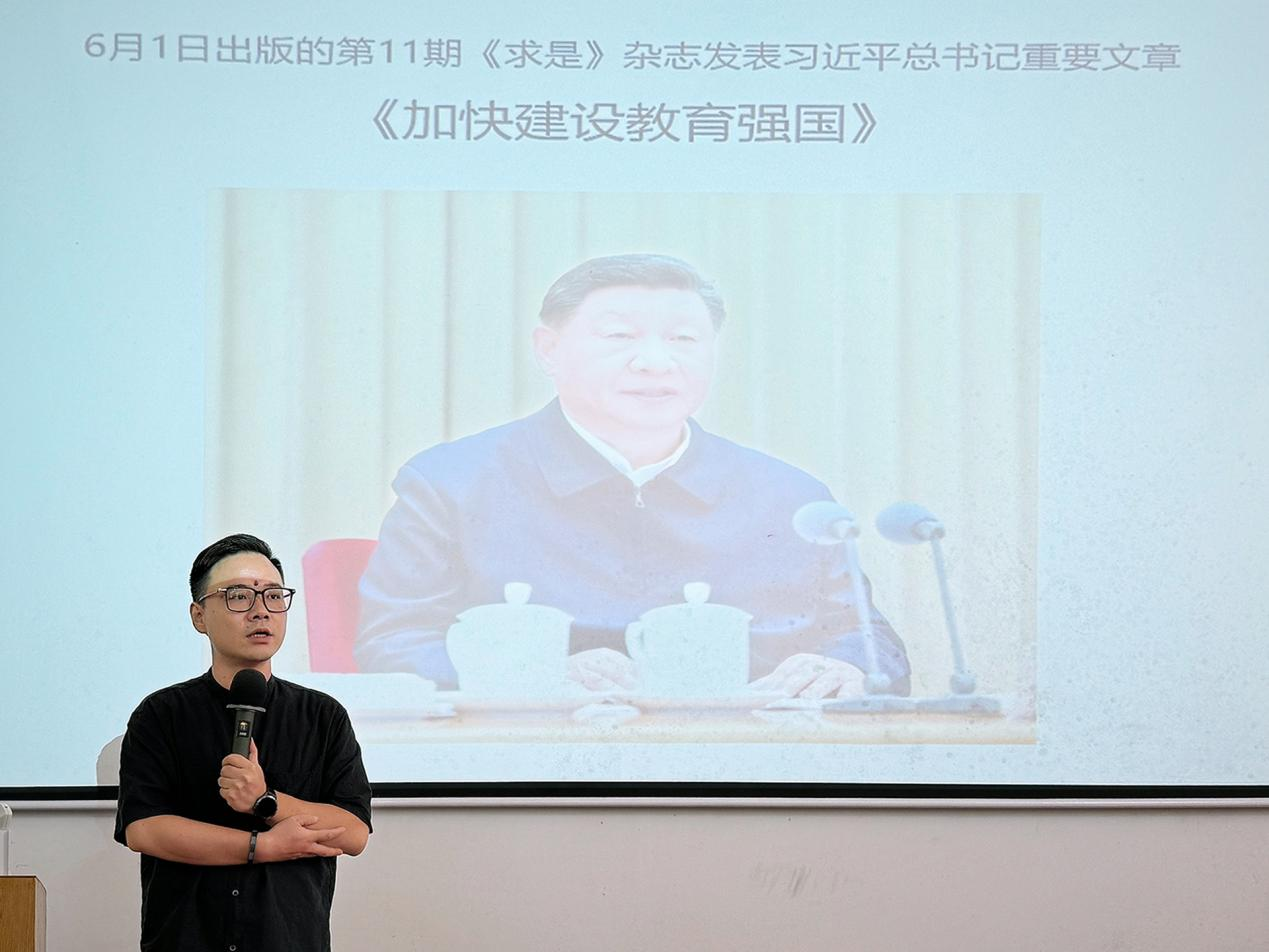 6月25日,影视动画学院在东校区综合楼110教室召开全体教职工会议,集中学习了习近平总书记重要文章《加快建设教育强国》和《教育强国建设规划纲要(2024—2035年)》,本次会议由学院党总支书记张帆主持。