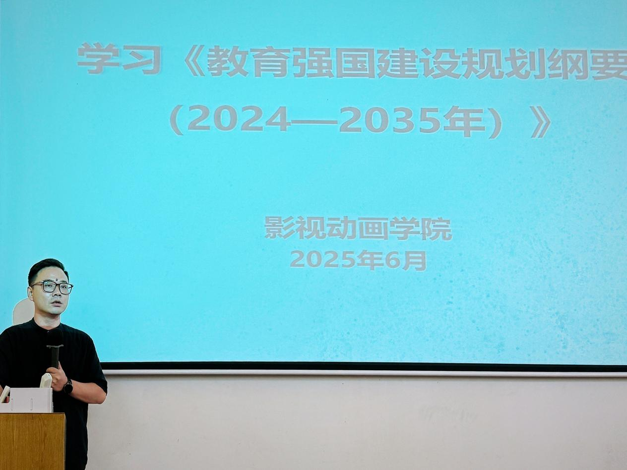 在影视动画学院调整重组伊始,通过此次专题学习,学院凝聚共识、锚定方向,在今后的工作中,要坚持以习近平新时代中国特色社会主义思想为指导,以贯彻《教育强国建设规划纲要(2024—2035年)》为战略支点,聚焦培养拔尖人才、优化教育体系,主动融入教育现代化战略布局,奋力谱写教育强院新篇章。