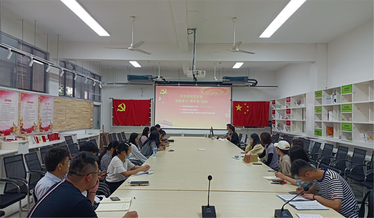 为了让学院广大党员真正做到学史明理、学史增信、学史崇德、学史力行,以昂扬姿态奋进新时代、启航新征程、创造新业绩,以优异成绩迎接建党一百周年。2021年4月23日下午5:00,环境艺术学院党总部在功德楼207召开在党史学习教育中开展“百千万”活动,学院全体党员教师参加了此次活动。
