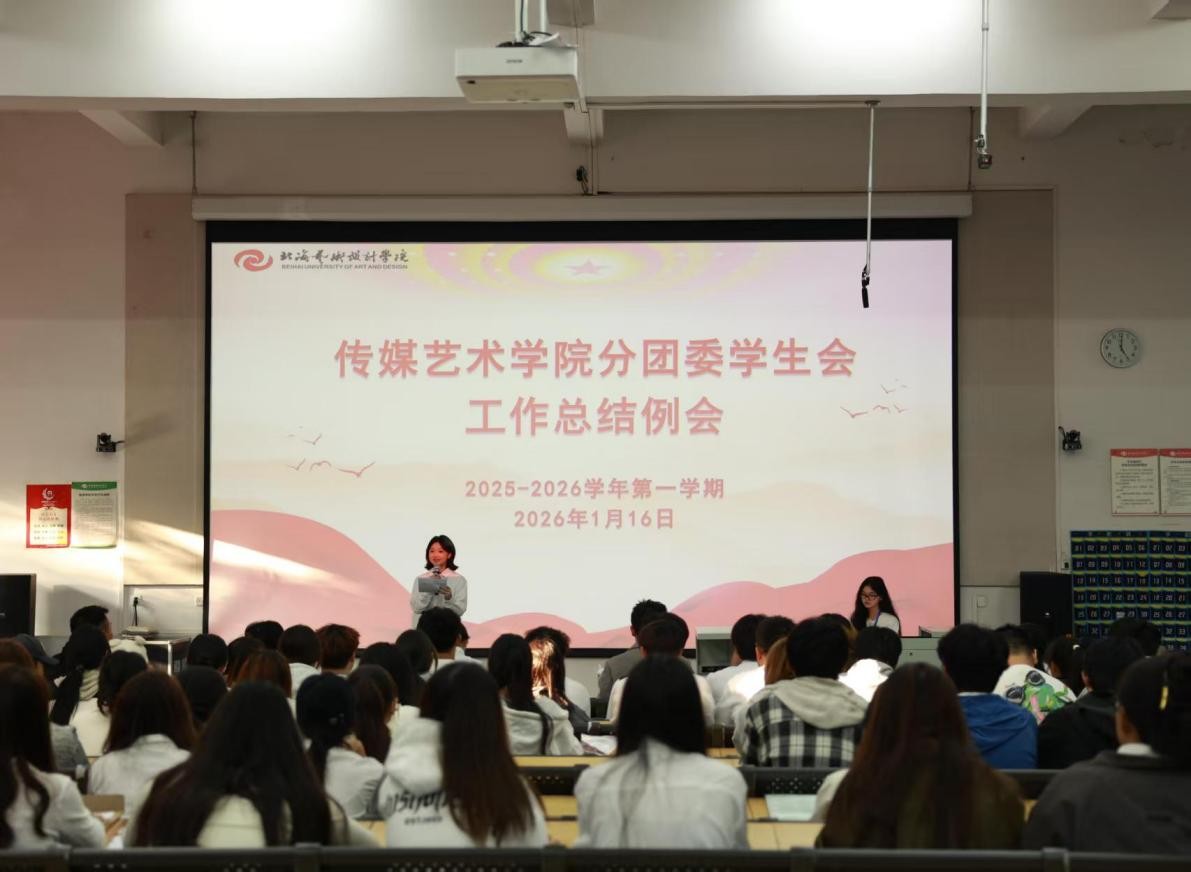 1月16日,传媒艺术学院分团委学生会2025-2026学年第一学期期末总结大会在西校区公德楼107教室召开。学院院长杜博、分团委书记吕梓豪出席会议,分团委学生会全体成员参会,会议由文体部部长林怡蓉主持。