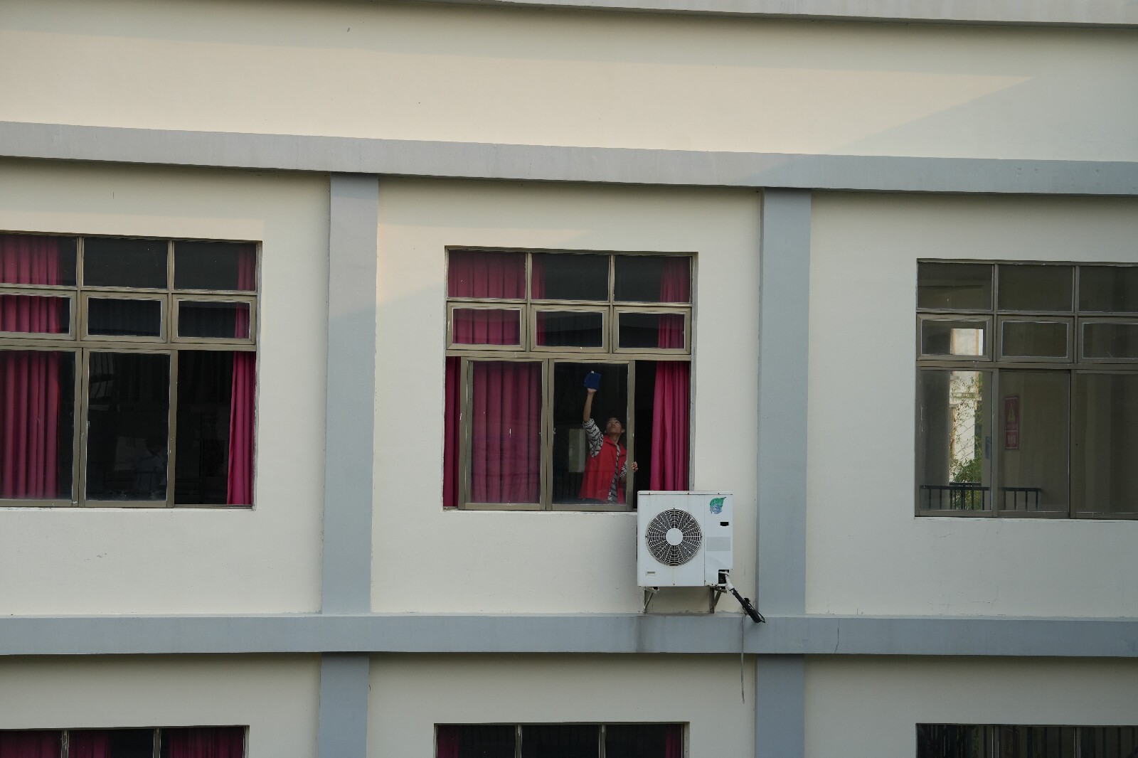 志愿者清理玻璃走廊