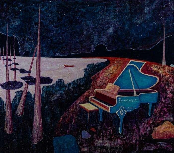 金志凯《白色钢琴与孤独的海》160×120cm