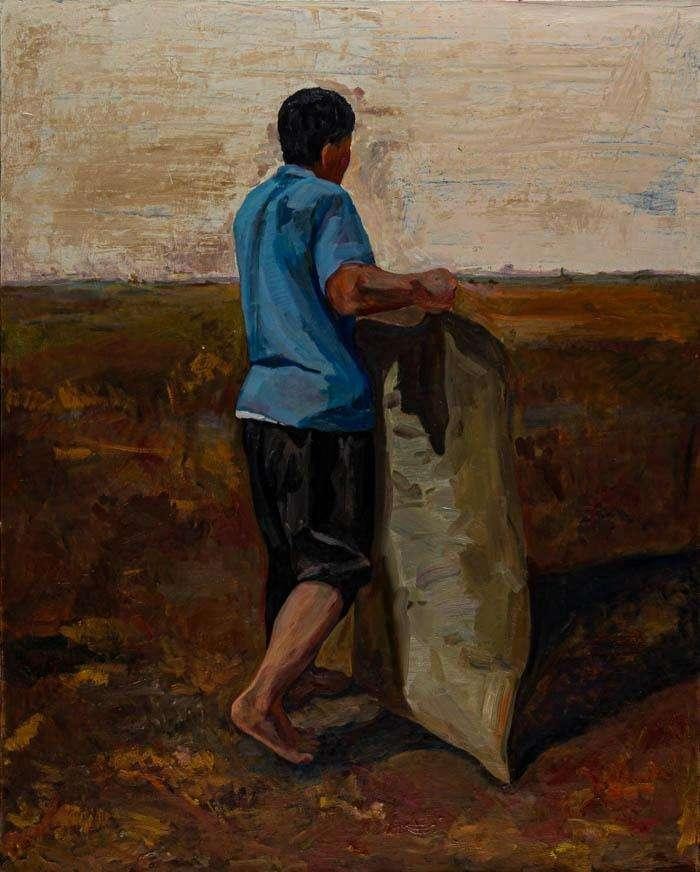 王宏《收玉米的人》150×120cm 指导教师:张湘中