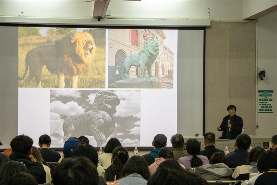 讲座最后,石村教授通过展示自身创作的作品,展现对中国传统艺术传承发扬以及对西方雕塑艺术的吸纳。他鼓励广大学子在雕塑艺术创作中深入挖掘中华文化内涵,自觉摒弃文化自卑,坚定文化自信,坚持文明交流互鉴,守正创新,创造传播中国价值观念,体现中华文化精神,反映中国人审美追求,具有中国气派的时代精品力作。