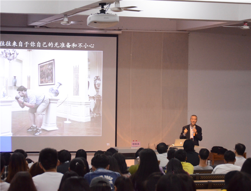 随后,程铁良教授为大家介绍在采访中所要用到的方法,以及提问中的技巧和提问类型。通过对一些失败例子的展现,令我们明白了采访技巧的重要性。他建议我们要学会利用自身优势来完成采访任务,在复杂环境中也要考虑拍摄规则,同时要学会伪装自己,寻找最佳角度,拍摄出最好的相片。