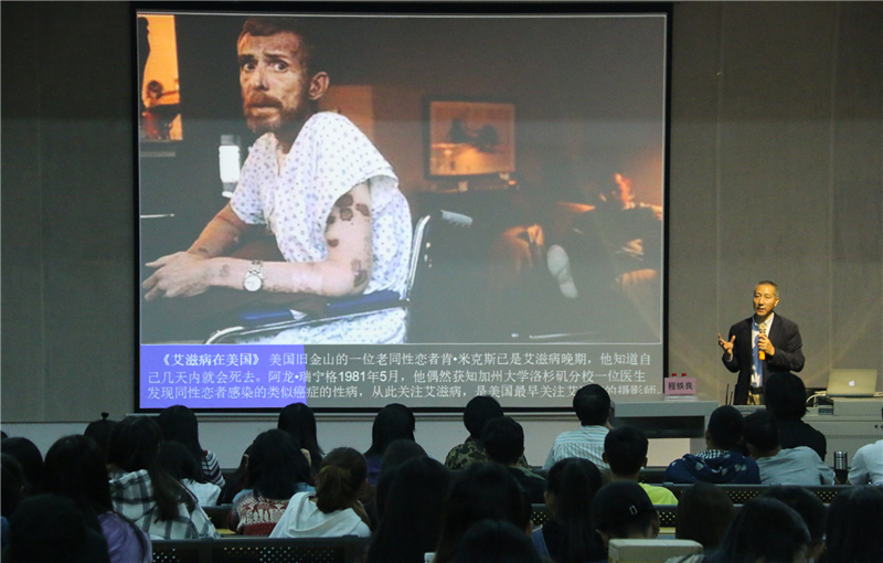 2018年11月24日晚19:30,我校西校区伦理楼107座无虚席。北京电影学院摄影学院新闻与媒体制作教研室主任程铁良教授带来了一场题为《新闻摄影采访中不能不说的故事——新闻摄影记者的得与失》的精彩讲座,本次讲座由美术学院副院长龚为主持。