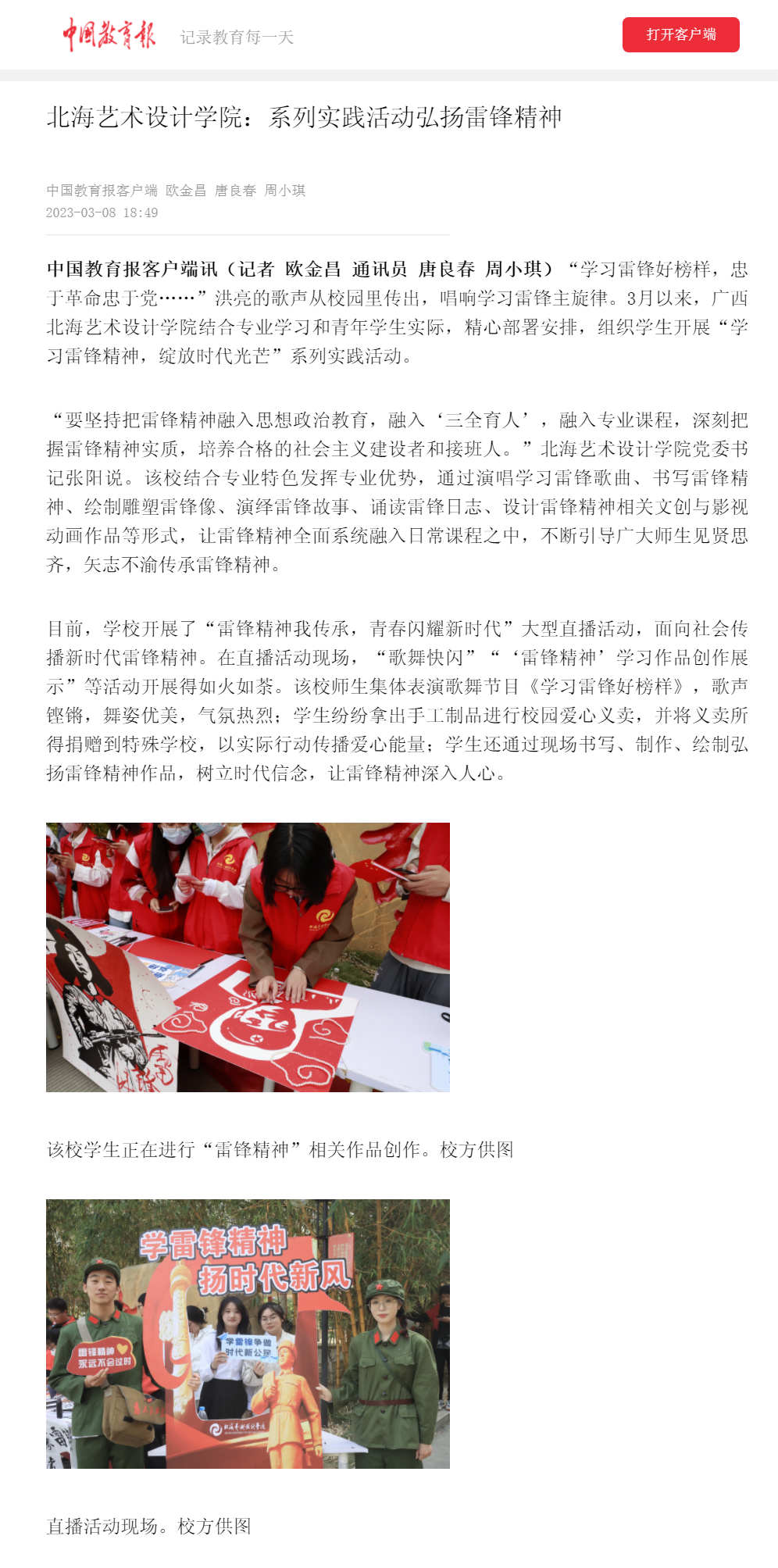 中国教育报:北海艺术设计学院系列实践活动弘扬雷锋精神