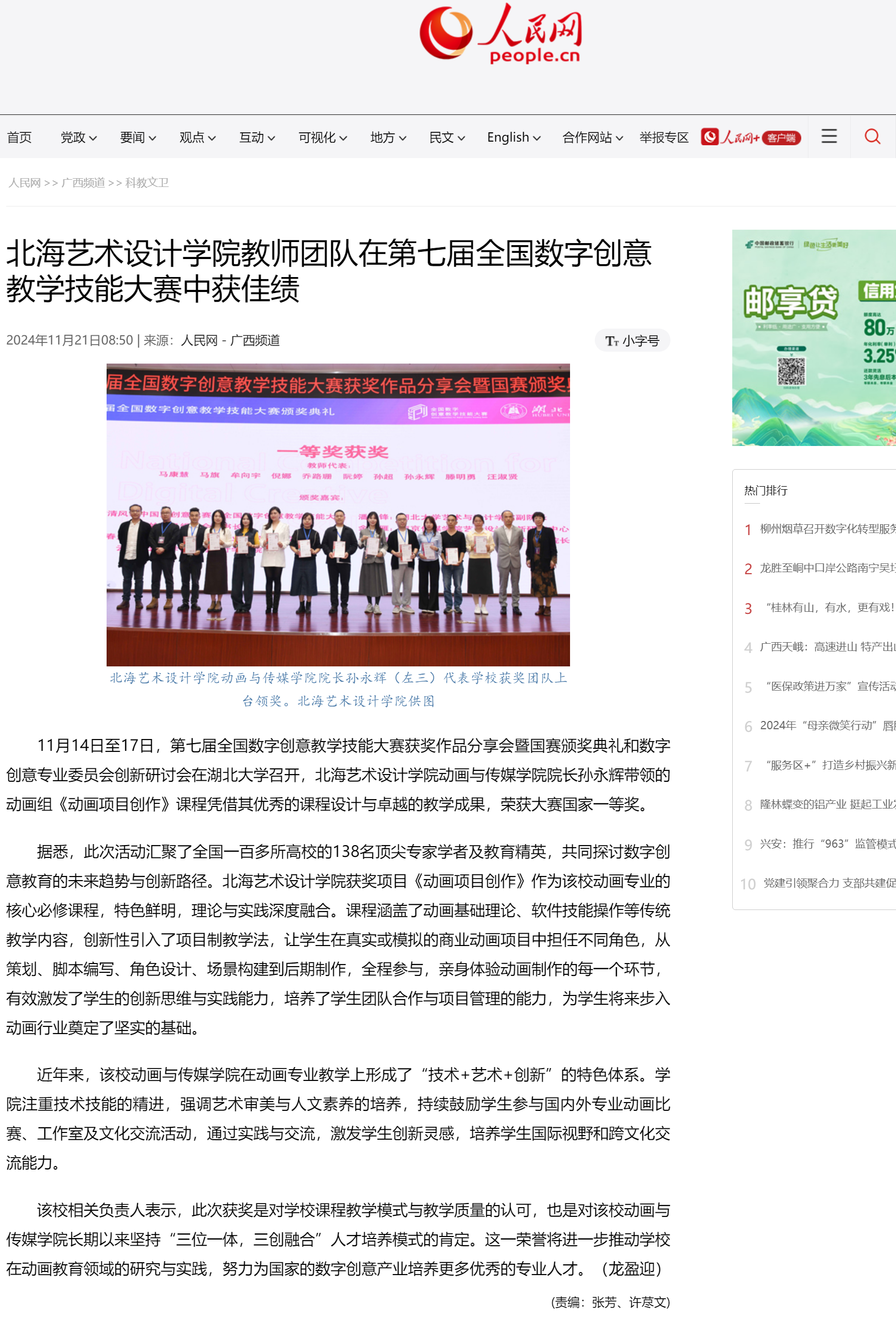 人民网:北海艺术设计学院教师团队在第七届全国数字创意教学技能大赛中获佳绩