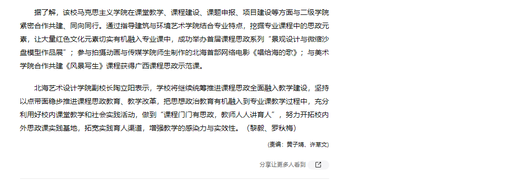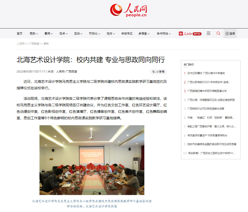 【人民网】北海艺术设计学院:校内共建 专业与思政同向同行