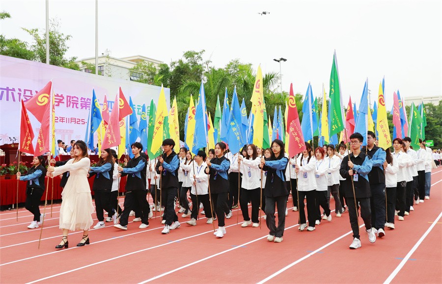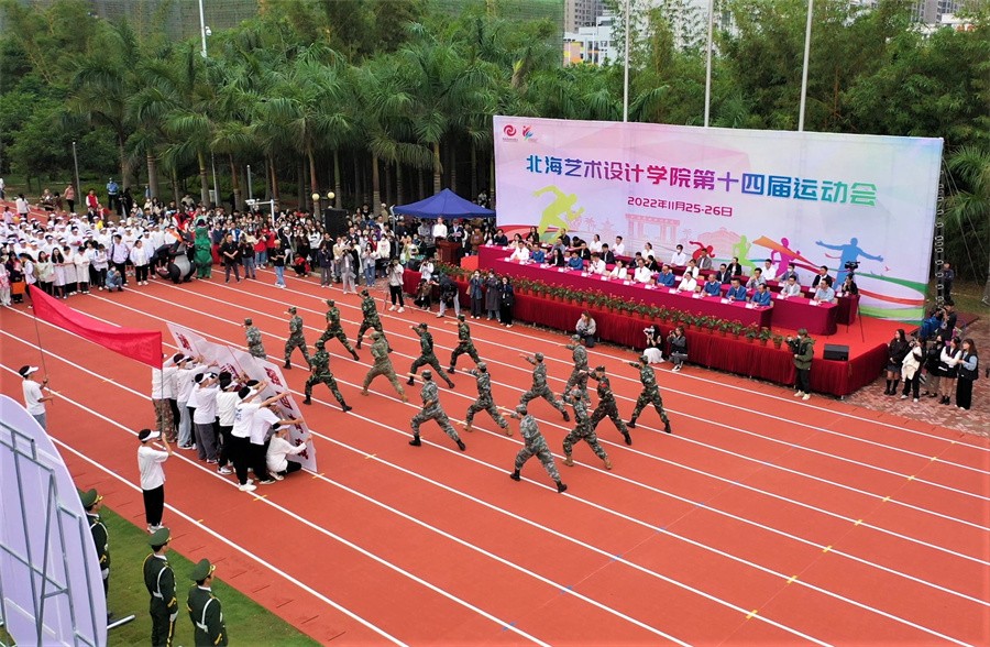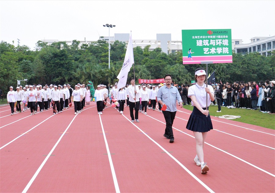 随着党委书记张阳宣布开幕的话音落下,彩炮响起,彩色礼花升空纷飞,北海艺术设计学院第十四届运动会正式进入比赛日程。