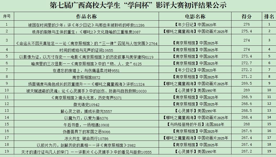 第七届广西高校大学生"学问杯"影评大赛评审结果公示