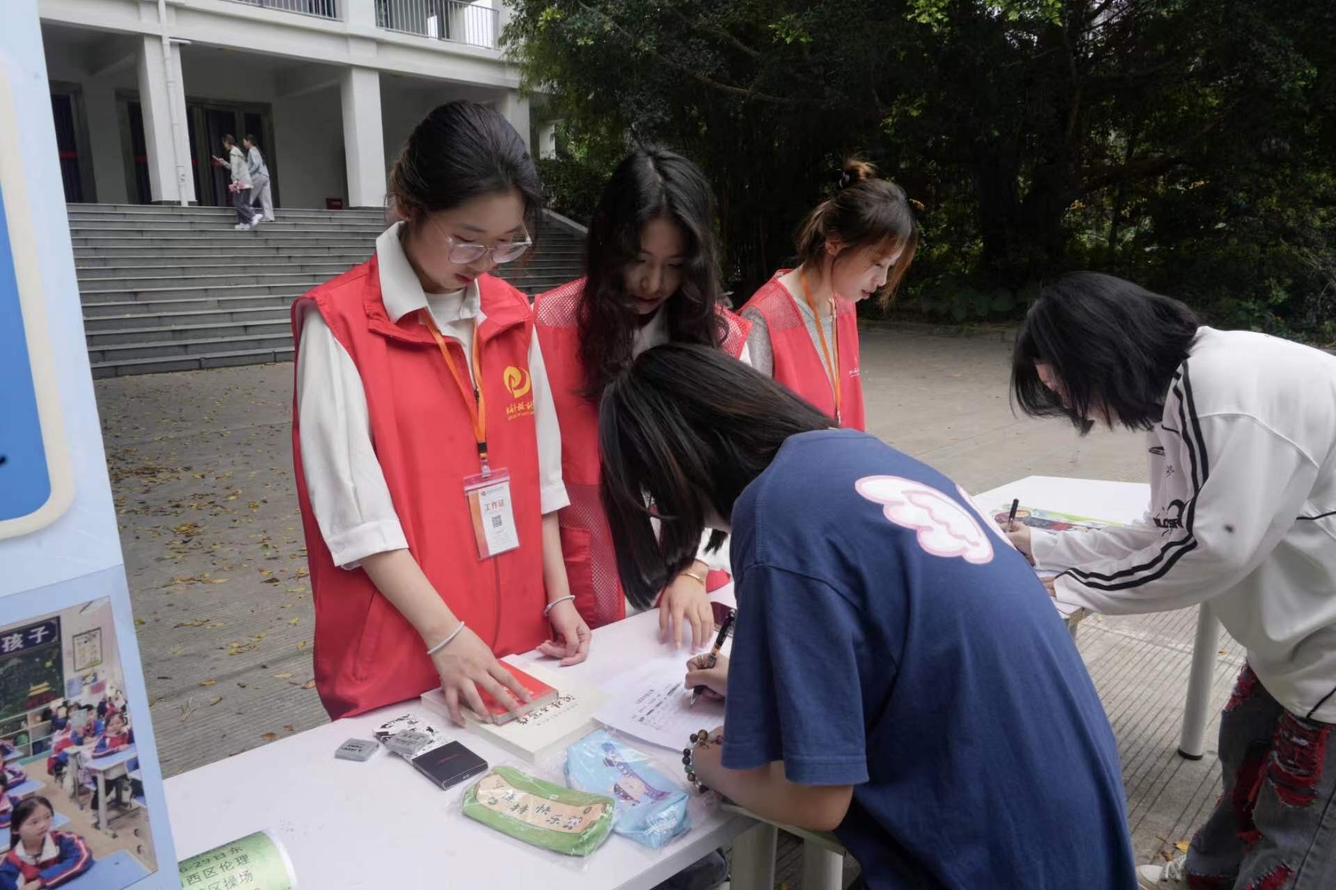 活动现场,同学们积极参与,在收集图书和记录捐赠名单的过程中尽显热情。每一本书都是一份爱的礼物,为山区的孩子们送去温暖与陪伴,让他们在成长的道路上不再孤单。