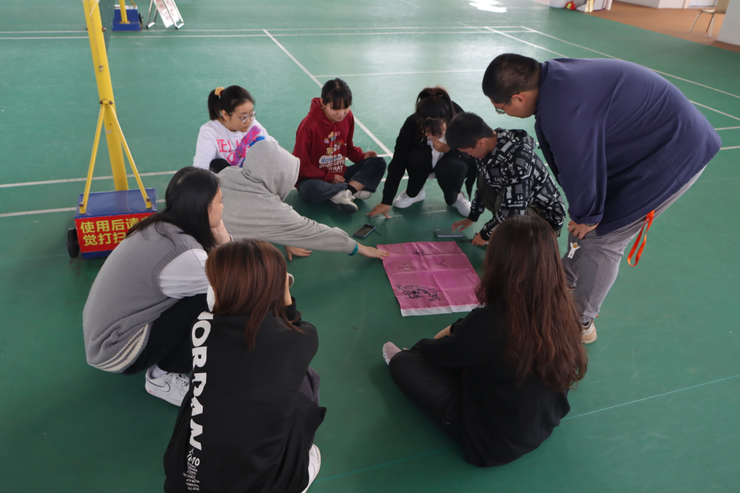 接着裁判下达任务,各组需要在三十分钟内确定每个组的队长、队名、绘制队旗并且排练队形、队歌、口号等内容。这是为了达到提升队长组织能力和组员之间的团结能力,增强创新意识的目的。