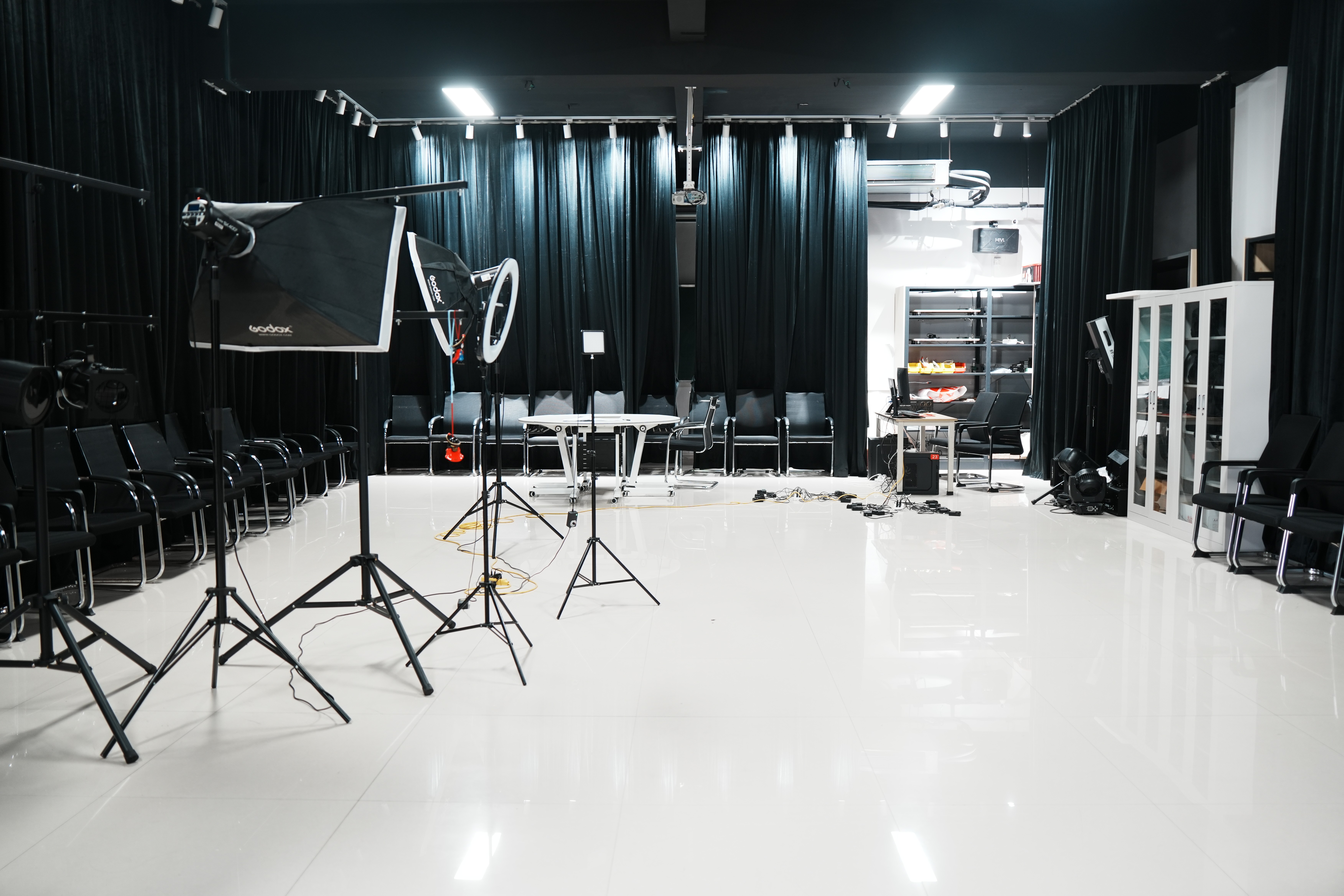 建筑与环境艺术学院摄影室位于北海艺术设计学院西校区公德楼407室,使用面积47平方米,于2024年3月建成并投入使用。摄影室内部安装遮光窗帘,墙面涂黑,以精准调控室内光线条件。摄影室备有20台佳能专业相机、20台尼康专业相机,50余种不同类型的灯光器材,包括帕灯,染色灯,面光灯,光束灯等专业灯具,可适用于大型演出及室内照明。摄影室内还备有可调式灯光架、灯钩,保险绳及航空箱等一系列专用设备,力求为建筑与环境设计专业的同学们打造一个专业的摄影室环境。