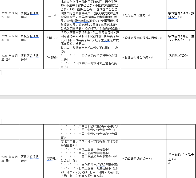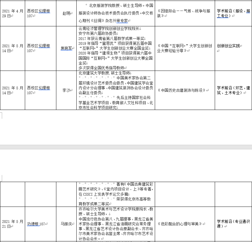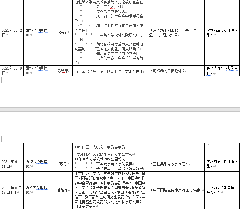2021年上半年北艺名师大讲堂信息统计