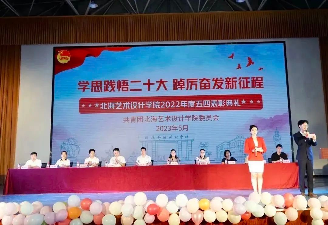 为了深入贯彻学习党的二十大精神,大力弘扬五四精神,充分发挥青年典型模范带头作用,团结引领北艺学子勤奋学习、砥砺奋斗,北海艺术设计学院于5月5日下午在西校区大礼堂举办“学思践悟二十大 踔厉奋发新征程”2022年度“五四表彰”典礼。