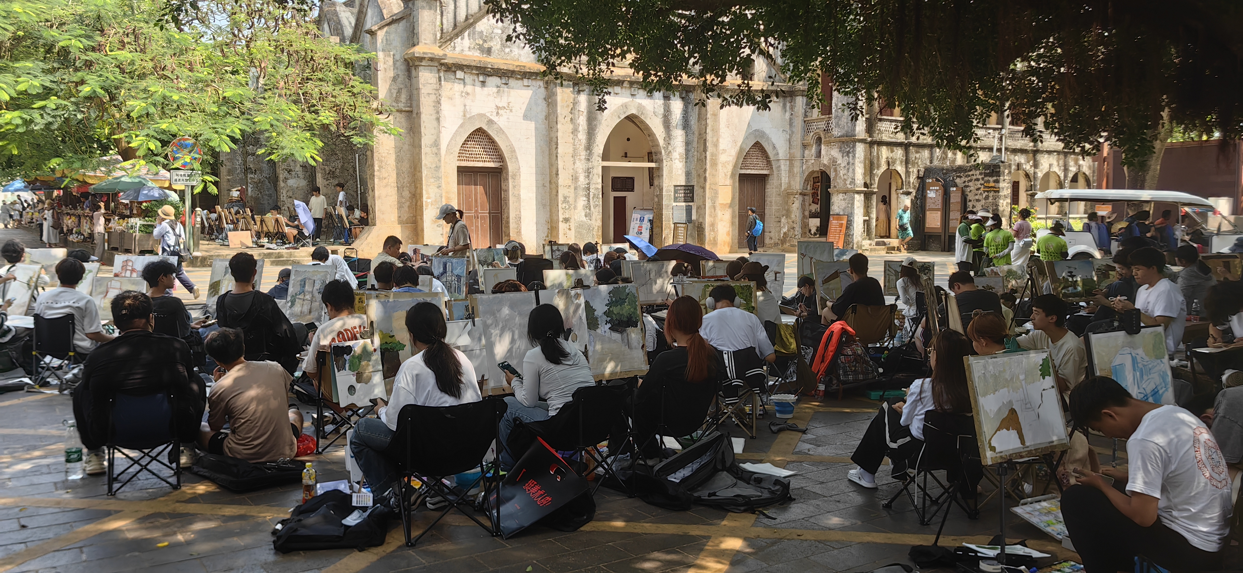 在教学活动实施过程中,学院组织管理得力,师生严格遵循教学计划,有序前往红色广场开展开展了爱国主义教育活动,再依次去到旧码头、教堂等实践点开展各项教学活动。学生在旧码头、教堂等实践点捕捉素材时,教师也积极巡查并给予专业指导。白天写生任务结束后,师生不顾劳累,继续开展晚间集中讲评教学活动,讲评方式多样,包括教师讲评、学生互评、学生自评等。教师客观全面分析写生作品,肯定学生付出,提出进一步完善和提升建议,学生们积极发表见解,现场气氛热烈,彰显出我校课程较高专业水准和深度,为学生提供了宝贵学习交流机会。