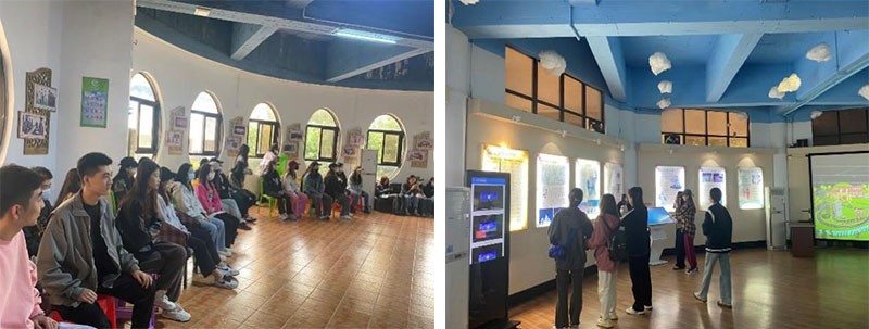 北海市群众艺术馆基地老师主要向学生展示了基地的历史渊源,建设基础以及品牌特色。学生积极参观,主动与工作人员了解学习相关信息。