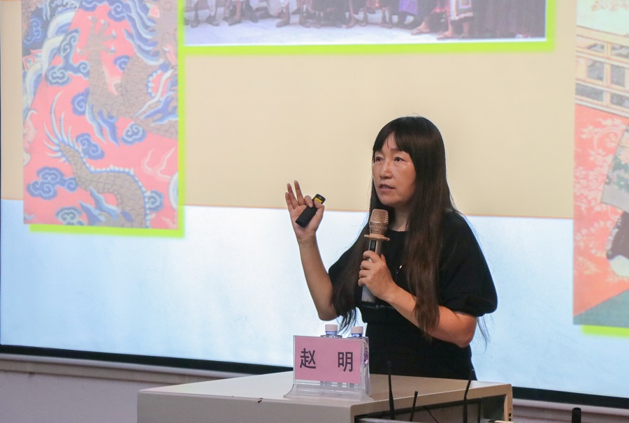 赵教授还介绍了少数民族的服装材质、外在轮廓、内在结构与工艺的区别,对其进行追本溯源,使得同学们更加深刻地了解到服装本身的不同之处。并结合实际案例,指出服装的平面结构需要结合立体思维,这样才能更好地了解服装的设计。