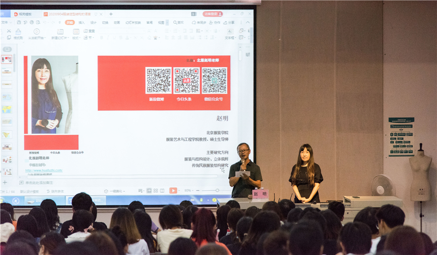 2020年9月4日(星期五)晚7:30分于我校西校区伦理楼107,北京服装学院教授、硕士生导师赵明教授为我校师生带来一场题为《服装造型结构的语言》的精彩讲座,现场座无虚席。本次讲座由副校长王斌主持。