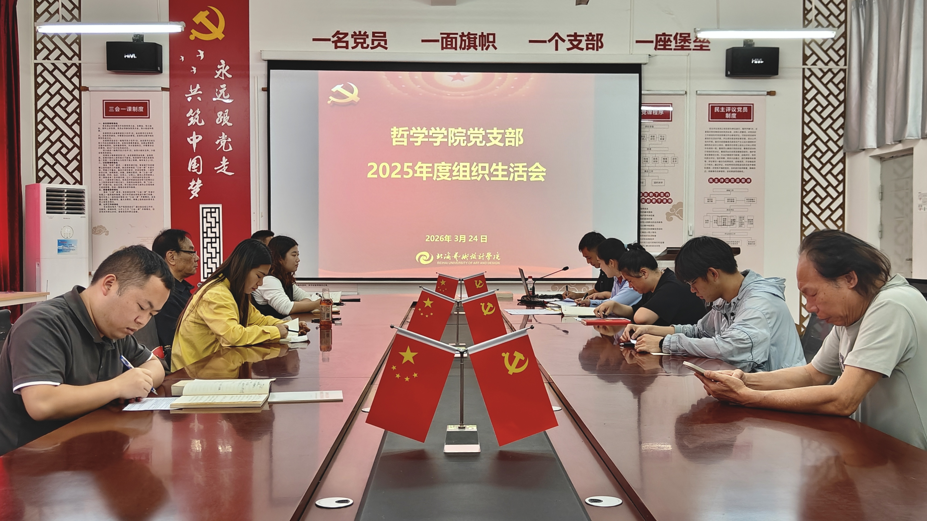 2026年3月24日下午,哲学学院党支部于西区公德楼204会议室,召开2025年度组织生活会和民主评议党员大会。由哲学学院党支部书记谢伟主持,上级党委代表莫益怀、黄思敏同志到会指导,哲学学院全体党员参会。