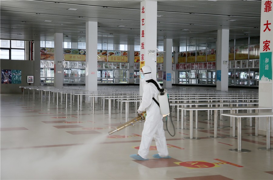 开学复课后,我校还将一如既往做好环境清洁卫生工作,加强日常预防性消毒,努力将防疫工作制度化、常态化、规范化,把好清洁消毒关,筑牢防控安全墙,为全体师生营造一个安全、健康的工作学习环境。