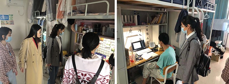 为了了解学生网课学习中遇到的问题,提高网课学习质量,3月15日上午,我院组织了第二次学生宿舍走访活动。副院长蔡森、学工办主任谢伟、教务办主任马芬、教务处人员以及各班班主任参与此次走访。