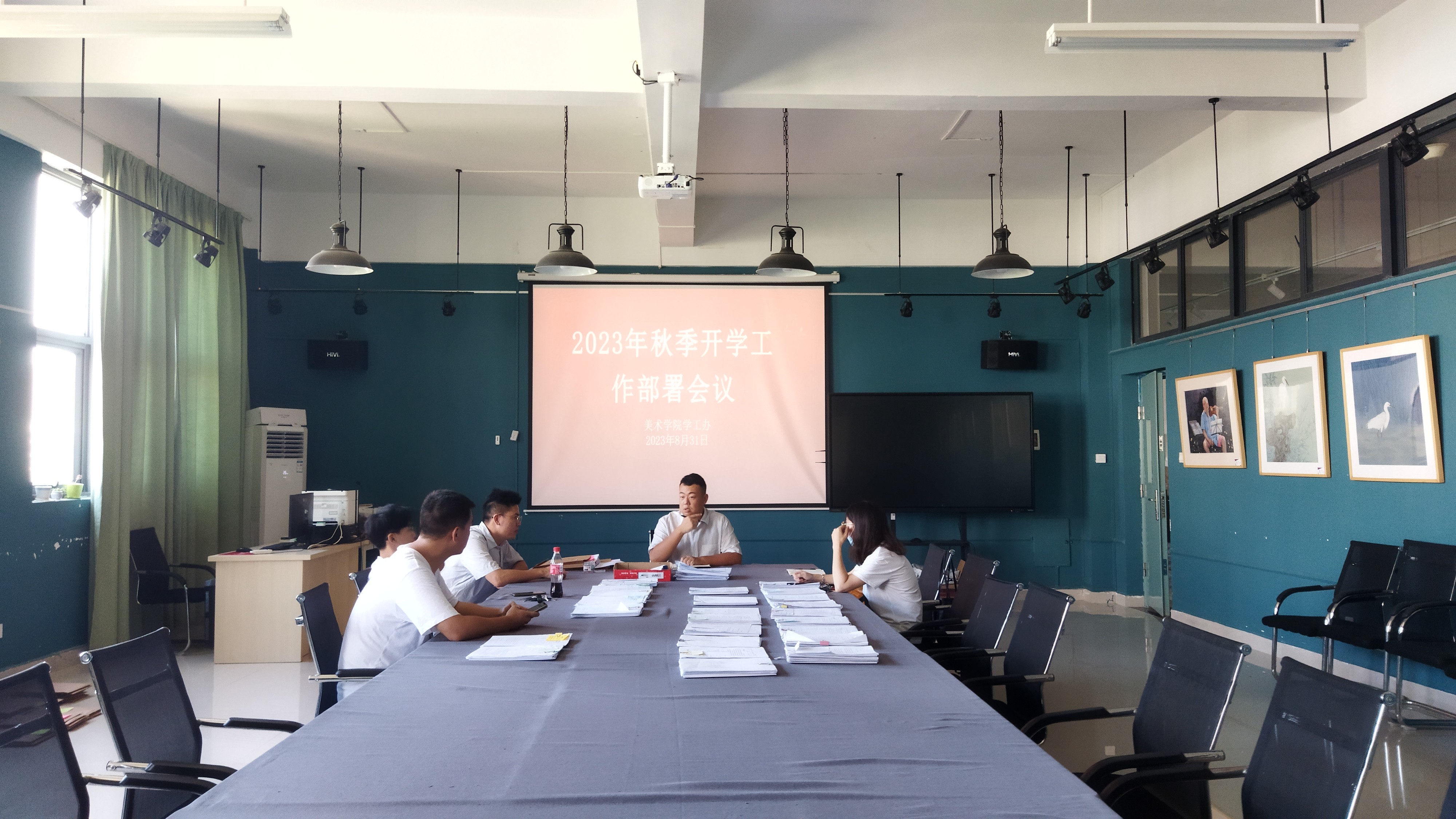 2023年8月31日,为迎接学生返校和新生入学,美术学院学工办进行2023年秋季开学工作部署会议,鲁明阳副书记主持会议,与学工教师共同商讨、确定具体工作安排。