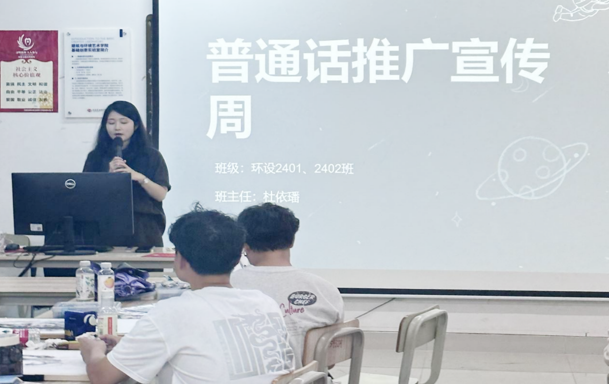 为响应第27届全国推广普通话宣传周,建筑与环境艺术学院积极策划并实施了一系列普通话推广活动,旨在加强学院文化建设,提升文化凝聚力与沟通力。普通话作为文化传承的重要载体,其推广对于师生间的交流及文化的传播具有重要意义。学院师生热情参与,将普通话的推广融入到日常教学与生活中。