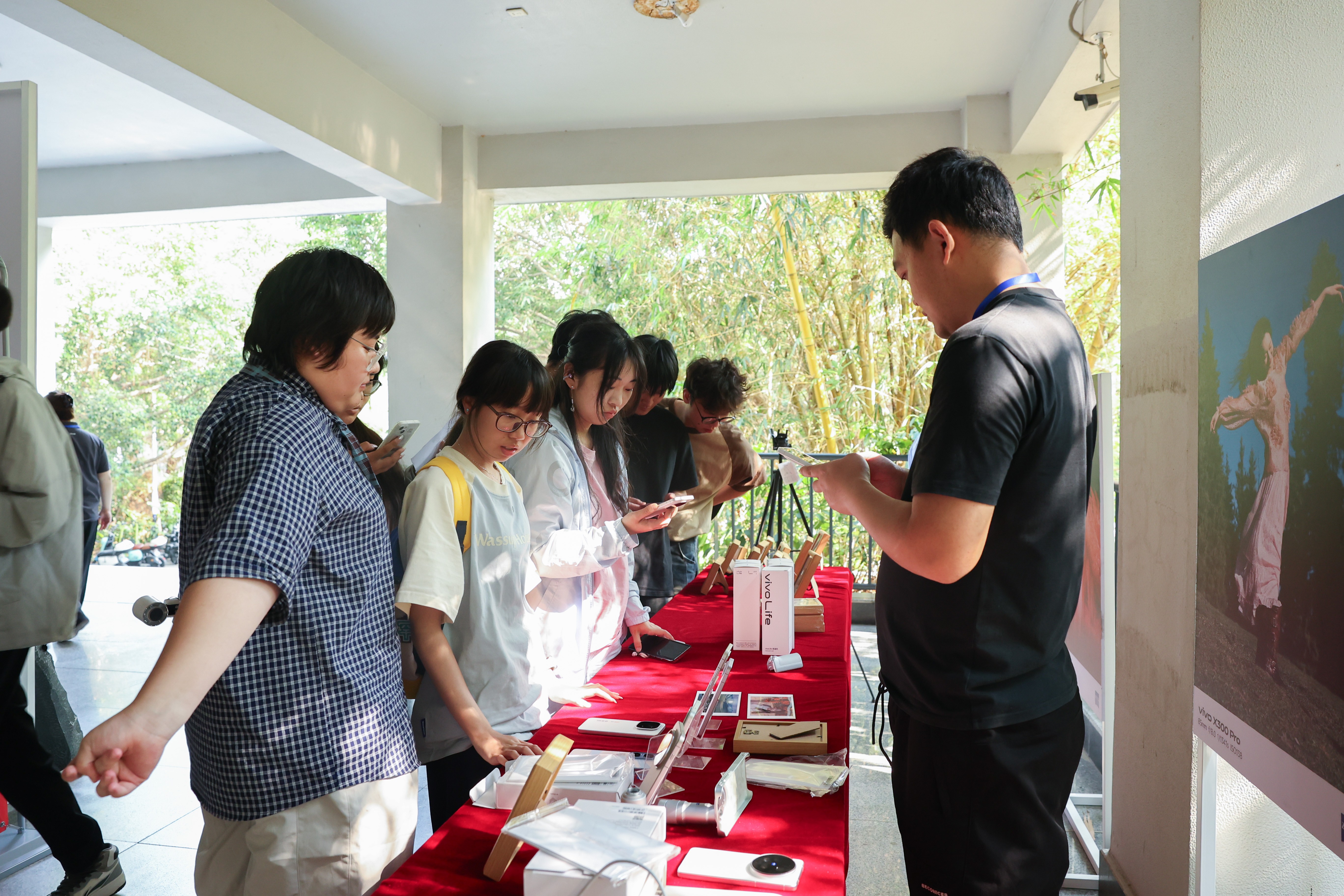 开幕式现场,主办方为同学们带来了30台vivo旗舰型号手机供现场体验,其中15台指定供摄影专业同学优先体验,让同学们直观感受手机影像技术的前沿成果,亲身体验vivo手机的影像性能与拍摄优势,为赛事创作提供坚实的硬件支持,也让大家真切体会到科技为影像创作带来的便捷与创新可能。