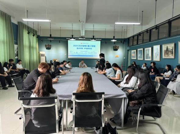 为了解学生在校学习生活需求、解决实际难题、提升育人服务质效,2026年4月24日,美术学院召开2025-2026学年第二学期学生座谈会。学院各部门领导及各班级学生代表参会,会议围绕教学、毕业创作、校园设施、宿舍生活等议题交流研讨。