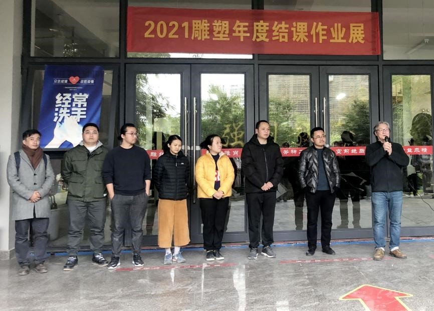 2021年12月30日下午5点,美术学院雕塑专业在艺术楼一楼成功举办2021年度结课作业展。出席本次展览的嘉宾有美术学院副院长龚为副教授、雕塑教研室主任潘毅群教授以及雕塑专业全体师生,开幕式由覃媛媛老师主持。