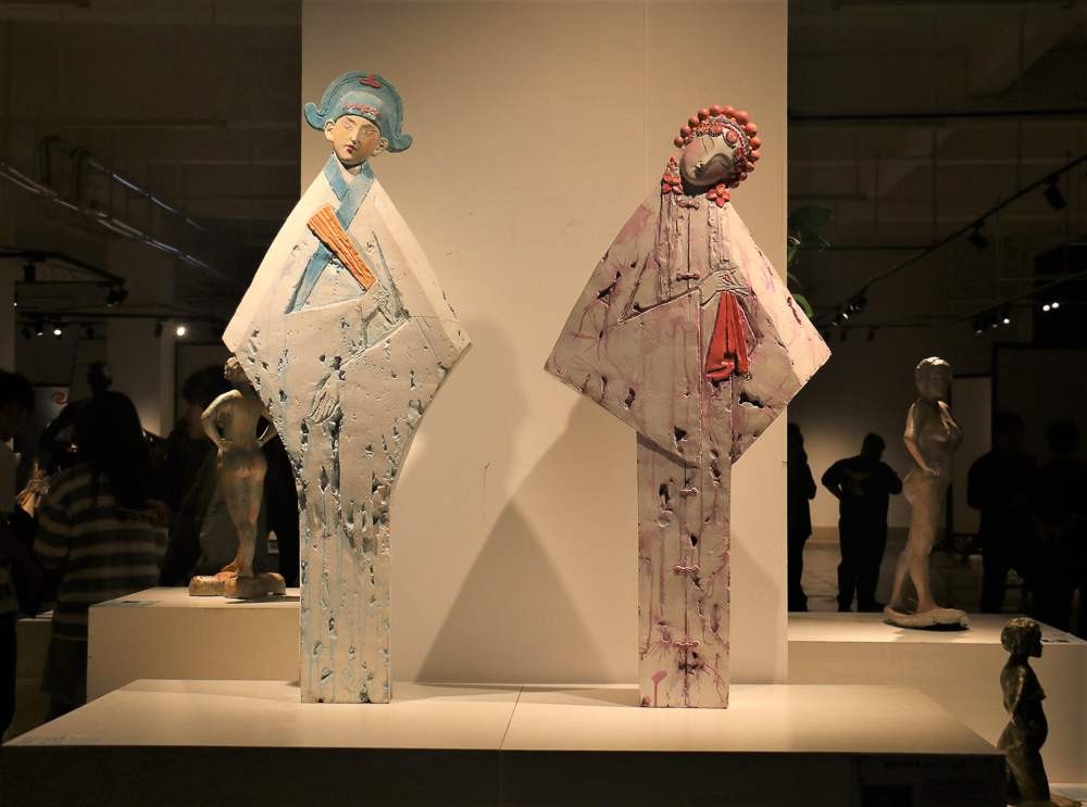 在师生的欢快讨论中本次活动接近尾声,一件件艺术品伫立在图书馆一楼,展示着专属于雕塑专业学生的魅力,本次展览开幕仪式圆满结束。(金凯靖 摄)