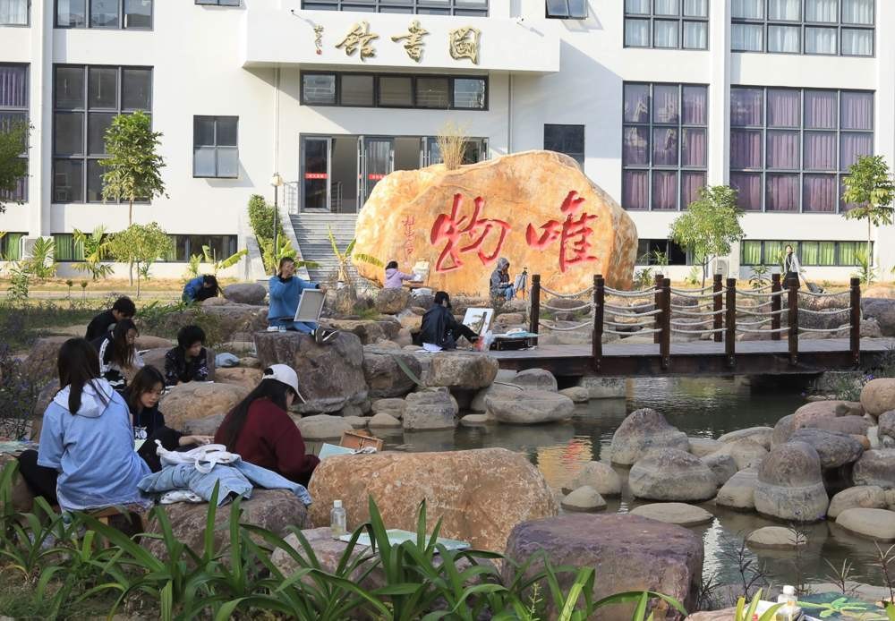 美术学院《风景写生》课程以校园风景写生为主要研究内容与实践方向,绘画过程围绕校园风景的色彩、构图展开,通过对校园选取适当的视角进行绘画表现,让同学们的目光更进一步的贴近校园,加深对学生对校园文化的理解。绘画过程既锻炼了学生们的构图和画面安排的能力,也培养学生对校园文化的认同情感,对绘画专业学生创作能力有很大的提高。比如学校的每一块石头的字样都有不同的涵义,通过写生实践活动,进一步加深了对北艺校园石头文化背后精神的理解。