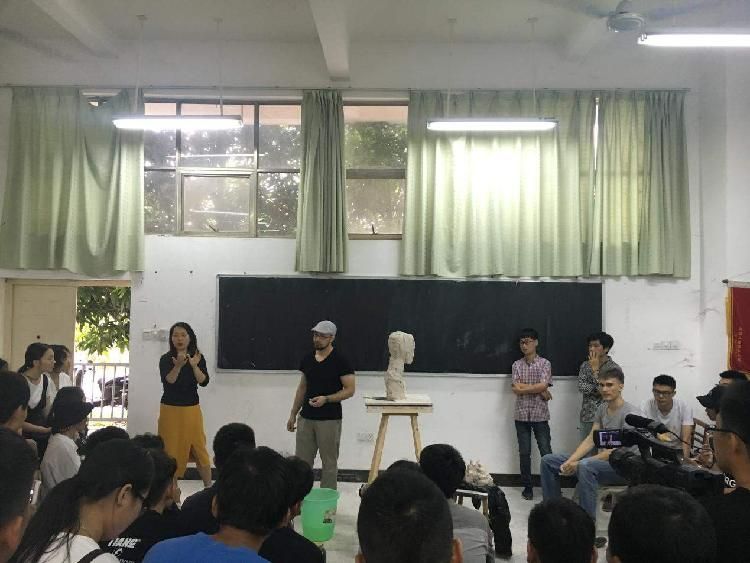 5月22日上午七点半。Nik-kit教授来到我院雕塑系为同学进行讲学,上课前Nik-kit教授表示很高兴来到我们学校,也很高兴同学们能有这么高的学习热情。