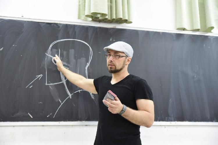 Nik-kit教授在示范的过程中会有重点的停顿,并且在黑板上标注出重要的部分。Nik-kit教授很注意讲解节奏,他会细心观察同学们的表情,发现有疑问的他就会停下来仔细分析。