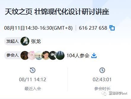 8月11日,美术学院雕塑专业与北京林业大学艺术设计学院本科第二学生党支部、材料学院家具学生党支部开展联建活动。活动由锦元和设计工作室创始人、壮锦文创设计师、工艺品设计师李岢老师作为主讲,展开题为《壮锦现代化传承和再设计》的讲座,本次活动以腾讯会议为平台,由桂林市非物质文化遗产保护和传承中心支持举办。