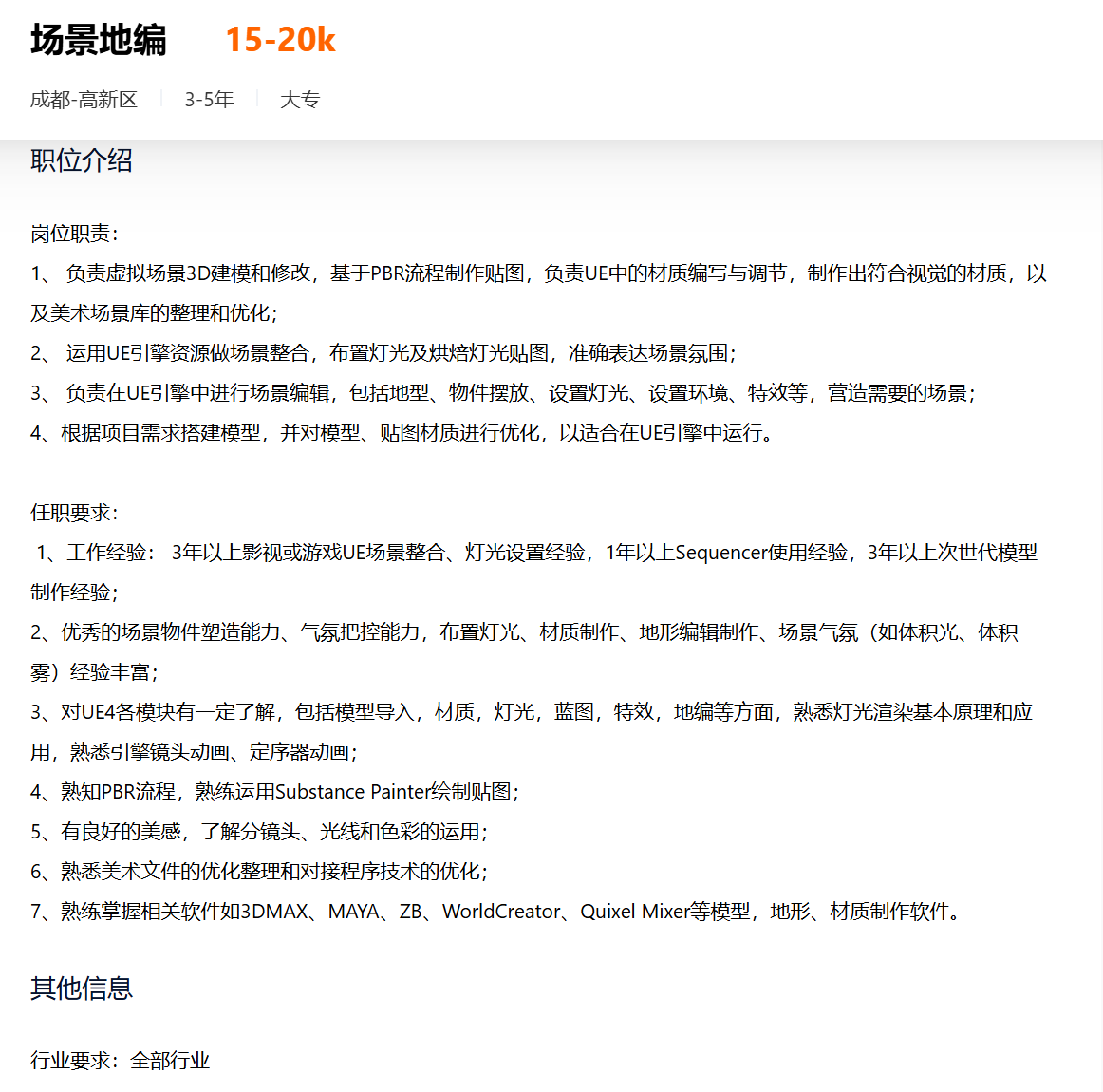 ✍️3D制作:Maya、ZBrush、Blender、Houdini(特效)、Substance Painter(贴图);