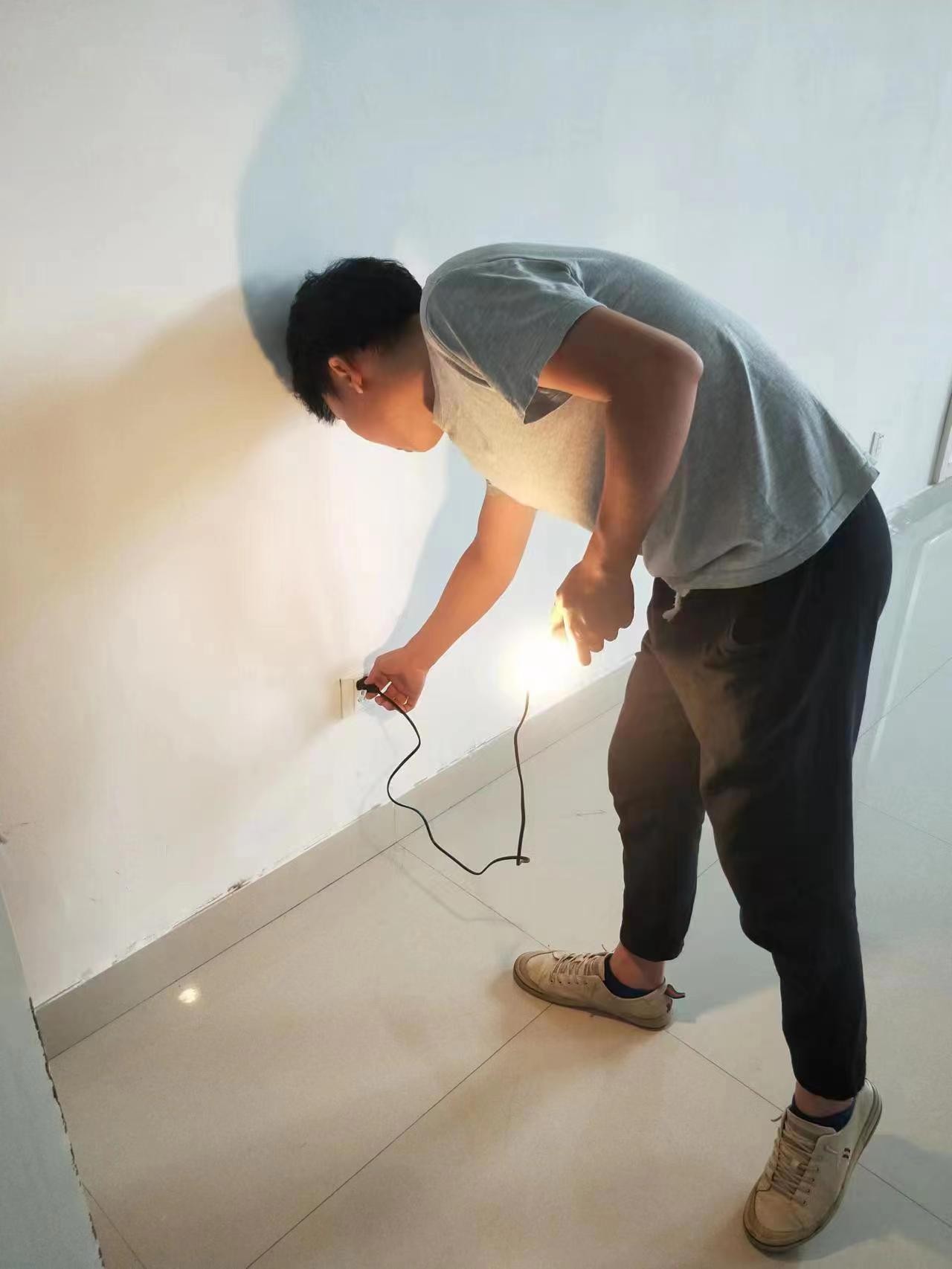 我校将于2023年6月17日举办全国大学英语四、六级考试,为了保证考试顺利进行,后勤保障处于6月15日开展调试考试铃声、检修考场线路、检查考场挂钟等协助工作,确保考试期间使用正常。(姚辉龙/摄)