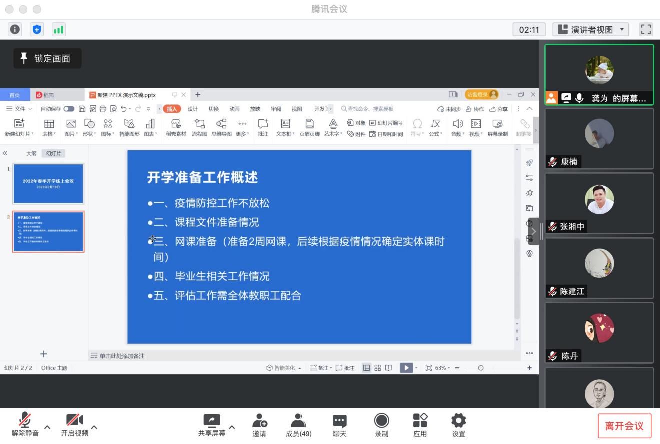 2022年02月10日,周四,天气晴。上午9点,美术学院于腾讯会议开展美术学院开学工作线上会议,会议由副院长龚为主持,议定如下事项: