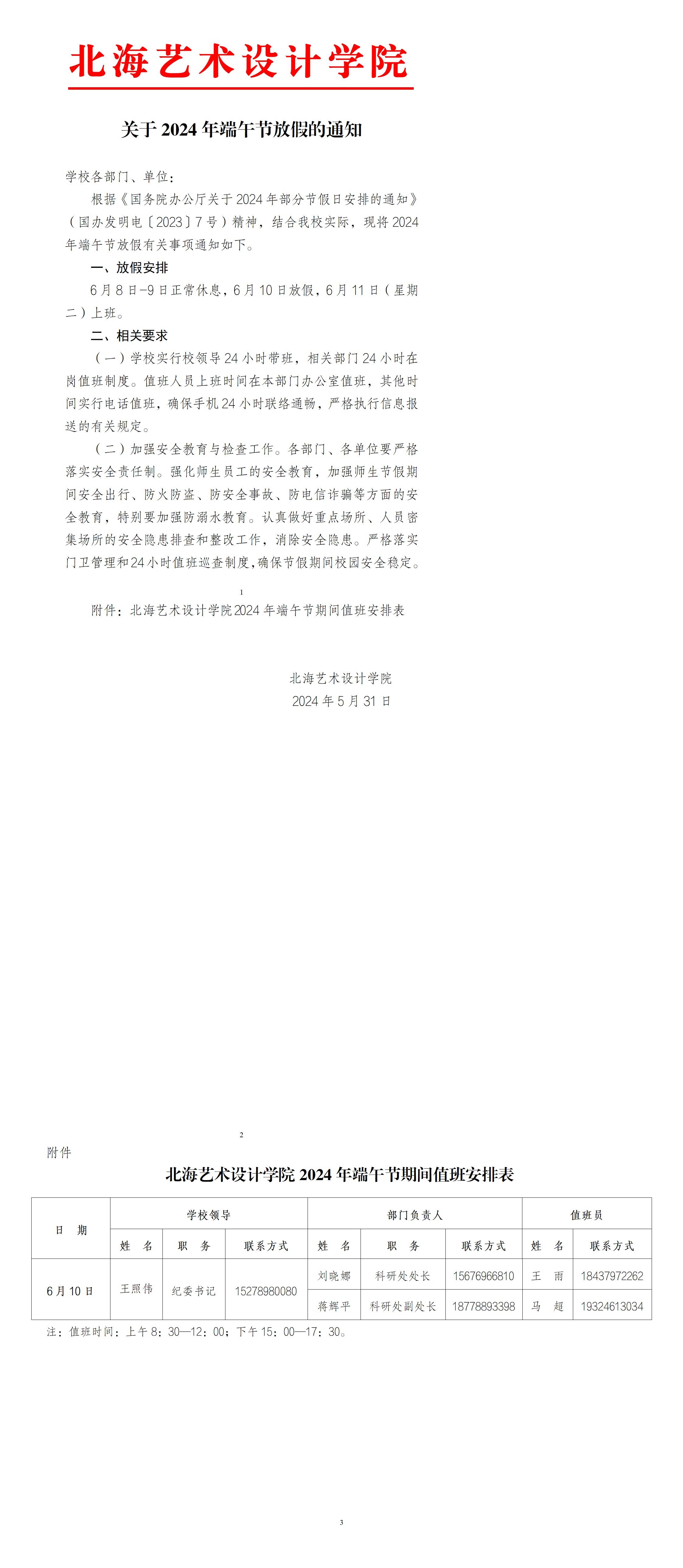 北艺发〔2024〕9号 关于印发北海艺术设计学院2024-2025学年 校历的通知