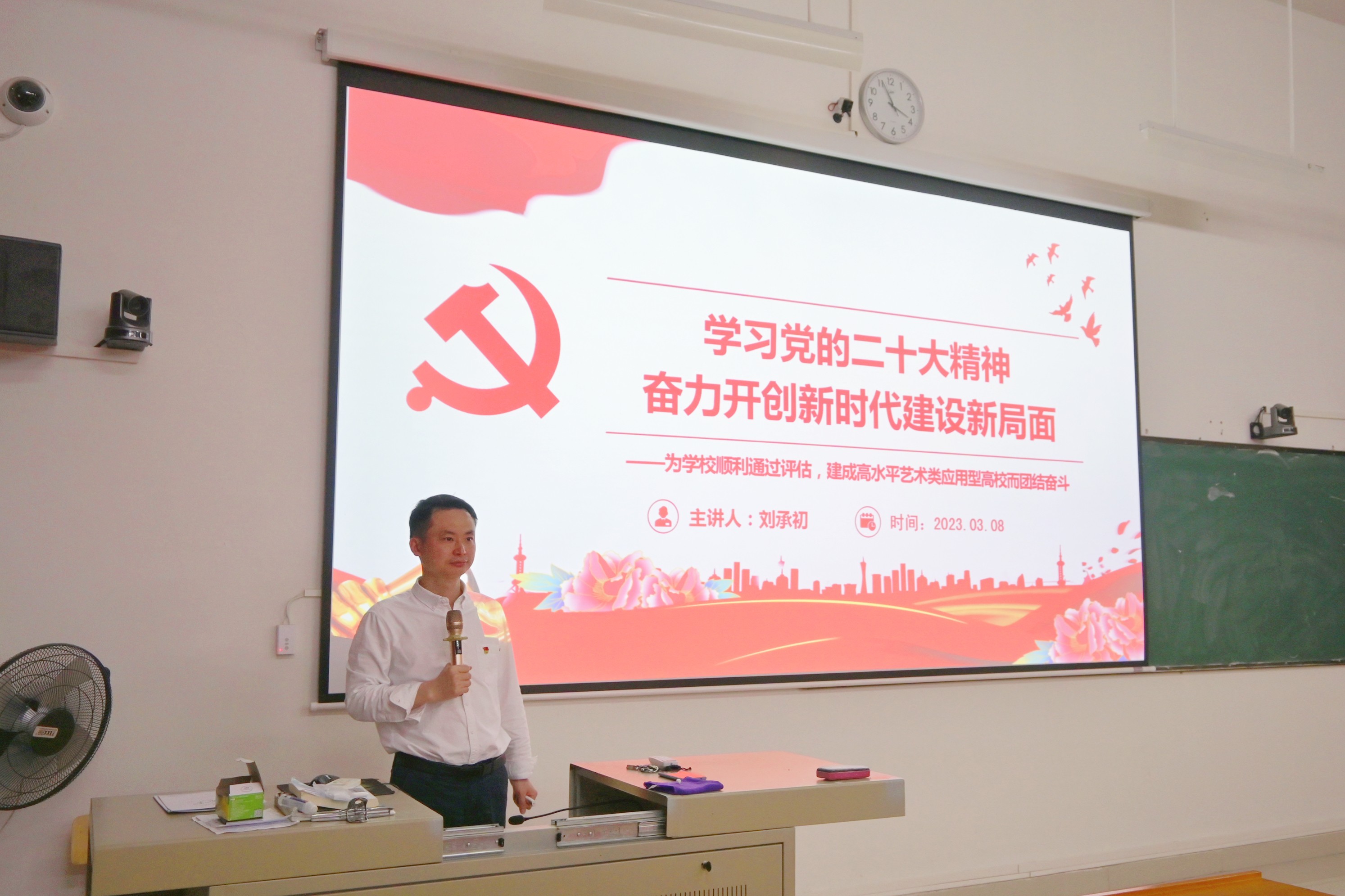 为深入学习贯彻党的二十大精神,切实推动党的二十大精神进课堂进教材进头脑,根据学校党委统一部署,3月8日晚19时30分,在公德楼112教室,学校党委委员刘承初为人文教育学院分团委的学生干部带来了一场题为《学习党的二十大精神,奋力开创新时代建设新局面》的宣讲会。