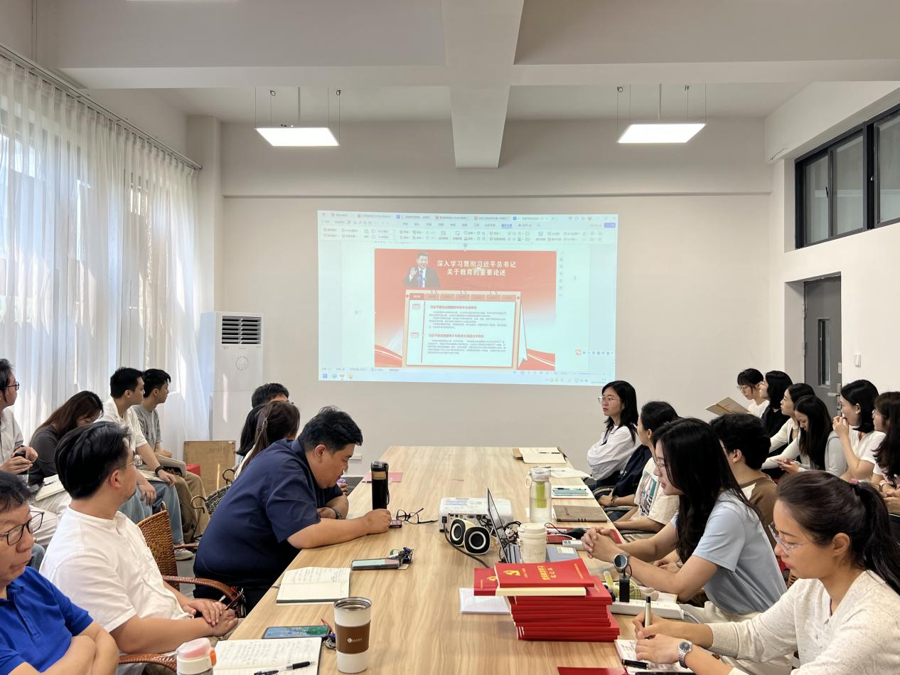 学习会上,岳莹书记领学导学,带领大家系统研读核心文件与重要精神。首先,全体教职工共同深入学习习近平总书记关于教育的重要论述,深刻领会 “培养什么人、怎样培养人、为谁培养人” 这一根本问题,准确把握新时代教育工作的使命担当,进一步坚定为党育人、为国育才的初心使命。随后,会议解读中共中央、国务院印发的《教育强国建设规划纲要(2024-2035年)》,引导教师们立足国家战略高度,自觉将个人发展、学科建设融入教育强国建设大局。